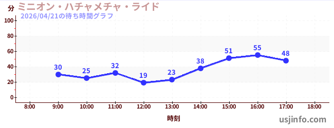 • ミニオン・ハチャメチャ・ライド$B$N(B2026年04月21日の待ち時間
