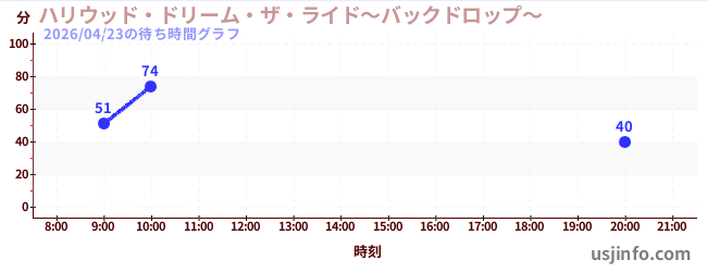 • ハリウッド・ドリーム・ザ・ライド〜バックドロップ〜$B$N(B2026年04月23日の待ち時間