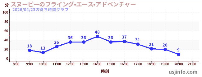 • スヌーピーのフライング•エース•アドベンチャー$B$N(B2026年04月23日の待ち時間