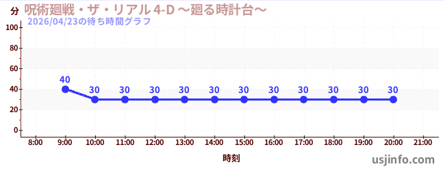 • 呪術廻戦・ザ・リアル 4-D ~廻る時計台~$B$N(B2026年04月23日の待ち時間