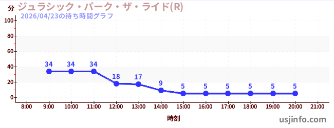 • ジュラシック・パーク・ザ・ライド(R)$B$N(B2026年04月23日の待ち時間
