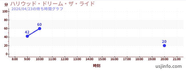 • ハリウッド・ドリーム・ザ・ライド$B$N(B2026年04月23日の待ち時間