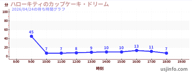 • ハローキティのカップケーキ・ドリーム$B$N(B2026年04月24日の待ち時間