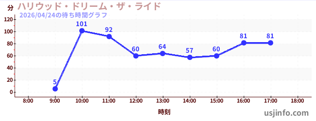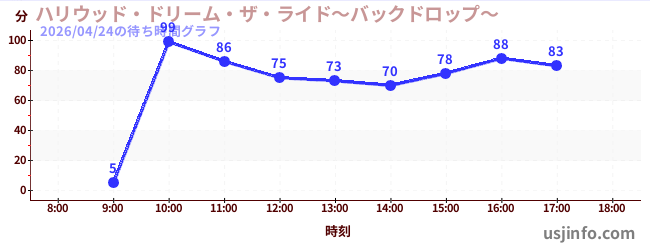 • ハリウッド・ドリーム・ザ・ライド〜バックドロップ〜$B$N(B2026年04月24日の待ち時間