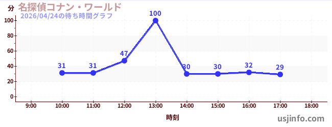 • 名探偵コナン・ワールド$B$N(B2026年04月24日の待ち時間
