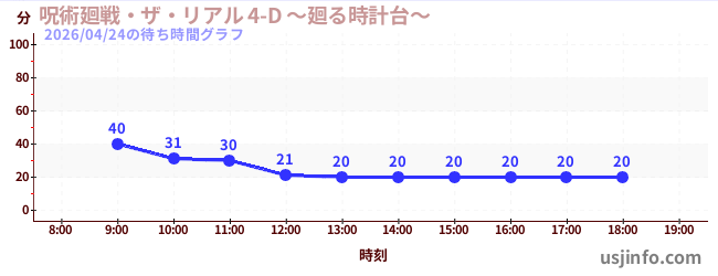 • 呪術廻戦・ザ・リアル 4-D ~廻る時計台~$B$N(B2026年04月24日の待ち時間