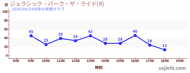 • ジュラシック・パーク・ザ・ライド(R)$B$N(B2026年04月24日の待ち時間