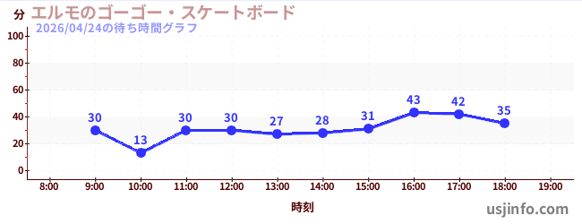• エルモのゴーゴー・スケートボード$B$N(B2026年04月24日の待ち時間