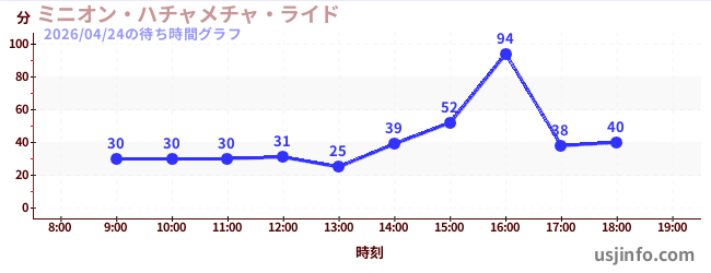 • ミニオン・ハチャメチャ・ライド$B$N(B2026年04月24日の待ち時間