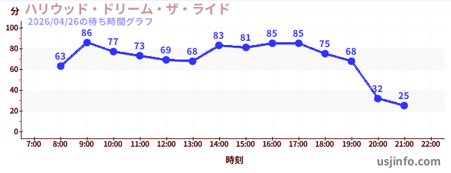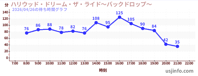 • ハリウッド・ドリーム・ザ・ライド〜バックドロップ〜$B$N(B2026年04月26日の待ち時間