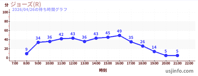 • ジョーズ(R)$B$N(B2026年04月26日の待ち時間
