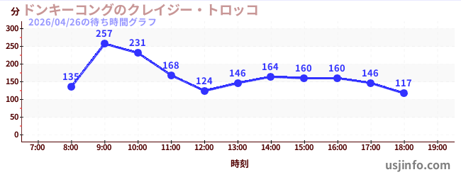 • ドンキーコングのクレイジー・トロッコ$B$N(B2026年04月26日の待ち時間