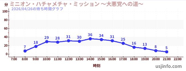 • ミニオン・ハチャメチャ・ミッション ~大悪党への道~$B$N(B2026年04月26日の待ち時間