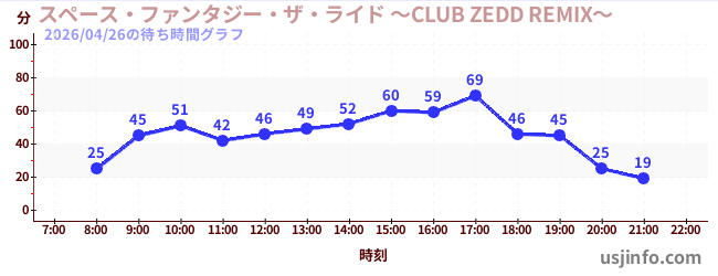 • スペース・ファンタジー・ザ・ライド ~CLUB ZEDD REMIX~$B$N(B2026年04月26日の待ち時間
