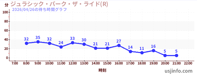• ジュラシック・パーク・ザ・ライド(R)$B$N(B2026年04月26日の待ち時間