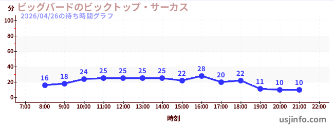 • ビッグバードのビックトップ・サーカス$B$N(B2026年04月26日の待ち時間