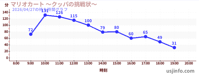 • マリオカート ~クッパの挑戦状~$B$N(B2026年04月27日の待ち時間