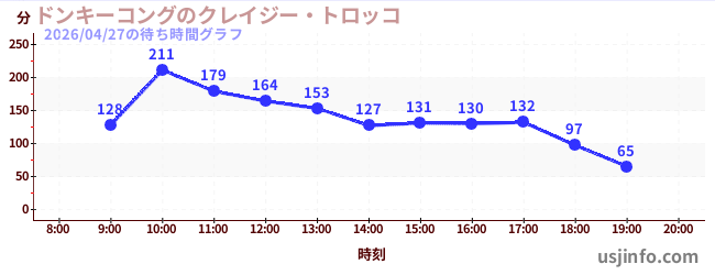 • ドンキーコングのクレイジー・トロッコ$B$N(B2026年04月27日の待ち時間