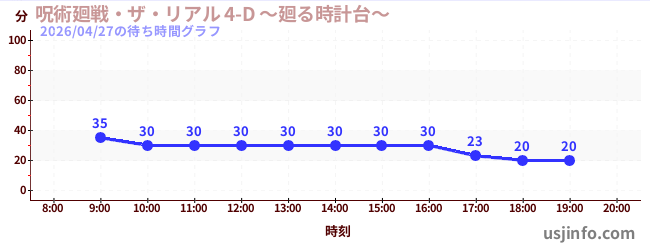 • 呪術廻戦・ザ・リアル 4-D ~廻る時計台~$B$N(B2026年04月27日の待ち時間