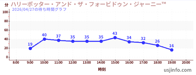 • ハリーポッター・アンド・ザ・フォービドゥン・ジャーニー™$B$N(B2026年04月27日の待ち時間