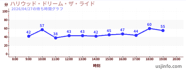 • ハリウッド・ドリーム・ザ・ライド$B$N(B2026年04月27日の待ち時間