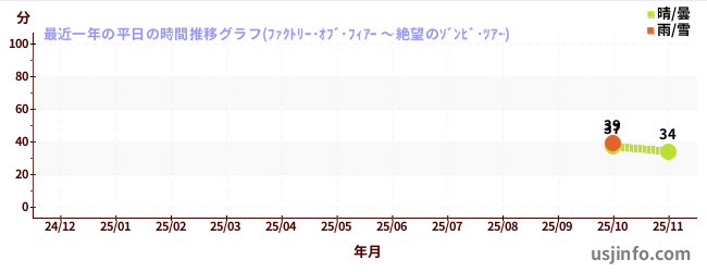 • ファクトリー・オブ・フィアー ~絶望のゾンビ・ツアー$B$N(Bここ一年間の平日の待ち時間
