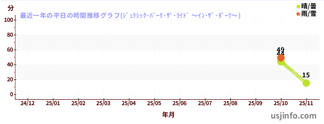 • ジュラシック・パーク・ザ・ライド(R)$B$N(Bここ一年間の平日の待ち時間