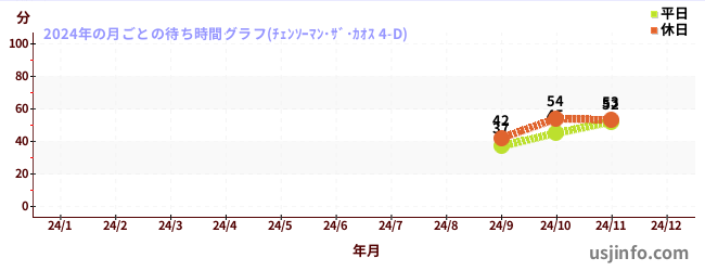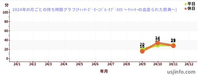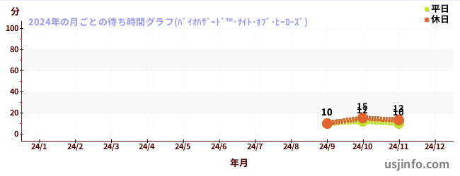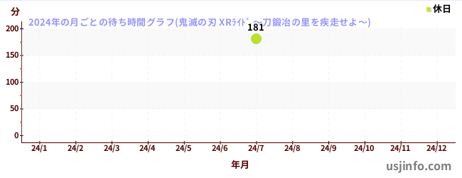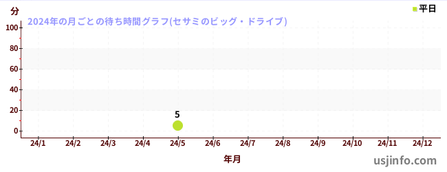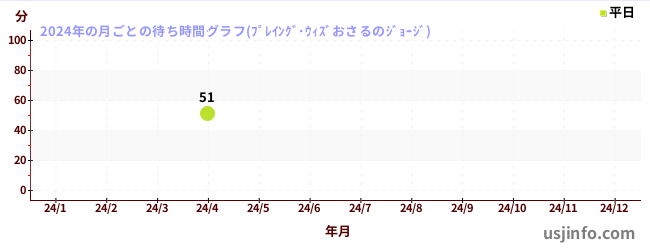 2024年の各月の月平均待ち時間(晴れ曇りの日限定)
