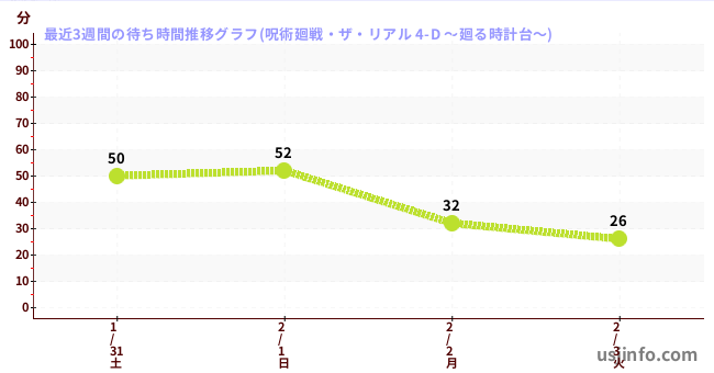 呪術廻戦・ザ・リアル 4-D ~廻る時計台~の待ち時間情報