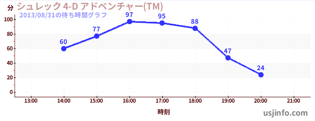 • シュレック 4-D アドベンチャー(TM)$B$N(B2013年08月31日の待ち時間