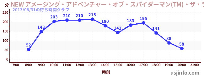 • NEW アメージング・アドベンチャー・オブ・スパイダーマン(TM)・ザ・ライド 4K3D$B$N(B2013年08月31日の待ち時間