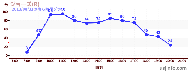 • ジョーズ(R)$B$N(B2013年08月31日の待ち時間
