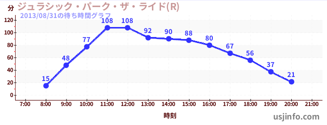 • ジュラシック・パーク・ザ・ライド(R)$B$N(B2013年08月31日の待ち時間