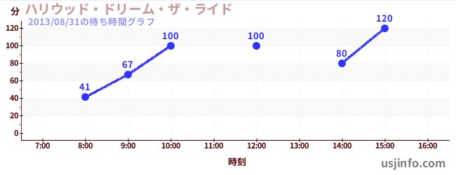 • ハリウッド・ドリーム・ザ・ライド$B$N(B2013年08月31日の待ち時間