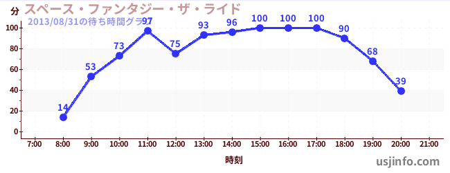 • スペース・ファンタジー・ザ・ライド$B$N(B2013年08月31日の待ち時間