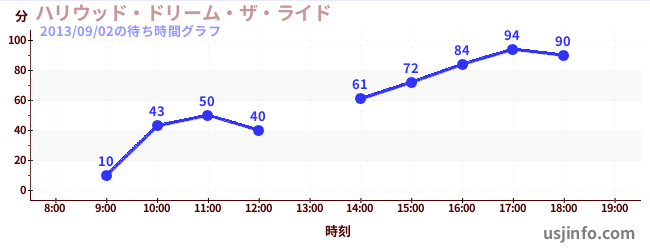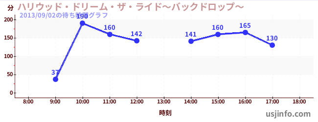 • ハリウッド・ドリーム・ザ・ライド〜バックドロップ〜$B$N(B2013年09月02日の待ち時間