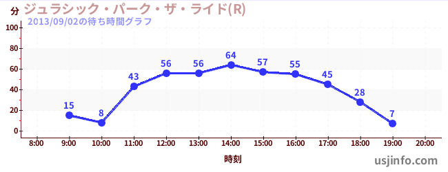 • ジュラシック・パーク・ザ・ライド(R)$B$N(B2013年09月02日の待ち時間
