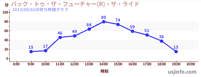 • バック・トゥ・ザ・フューチャー(R)・ザ・ライド$B$N(B2013年09月02日の待ち時間