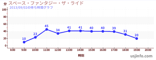 • スペース・ファンタジー・ザ・ライド$B$N(B2013年09月02日の待ち時間