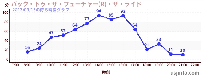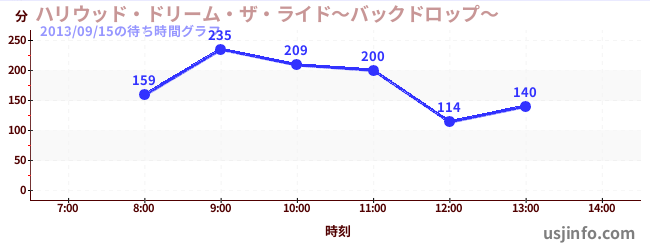 • ハリウッド・ドリーム・ザ・ライド〜バックドロップ〜$B$N(B2013年09月15日の待ち時間