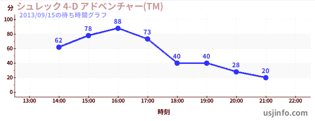 • シュレック 4-D アドベンチャー(TM)$B$N(B2013年09月15日の待ち時間