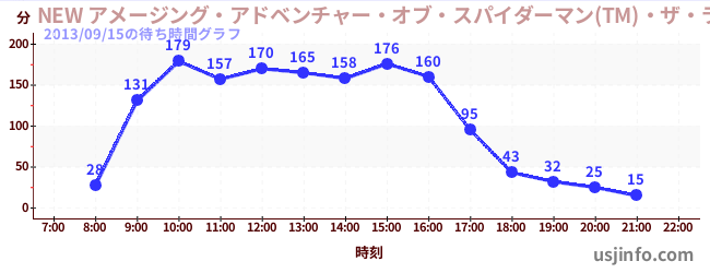 • NEW アメージング・アドベンチャー・オブ・スパイダーマン(TM)・ザ・ライド 4K3D$B$N(B2013年09月15日の待ち時間