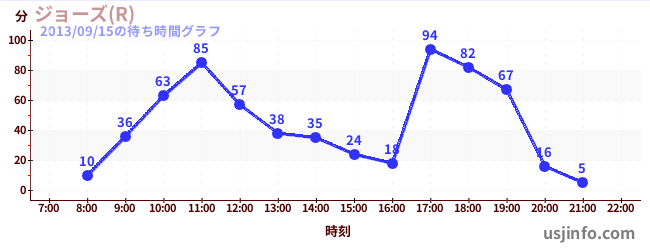 • ジョーズ(R)$B$N(B2013年09月15日の待ち時間