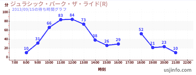 • ジュラシック・パーク・ザ・ライド(R)$B$N(B2013年09月15日の待ち時間