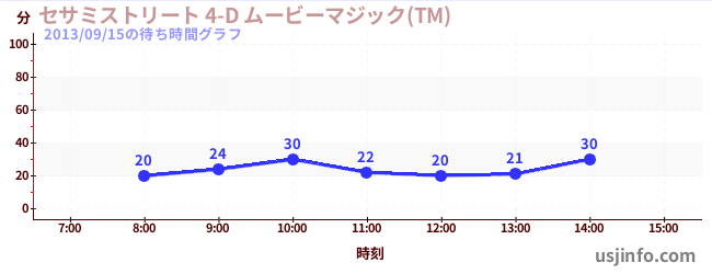• セサミストリート 4-D ムービーマジック(TM)$B$N(B2013年09月15日の待ち時間