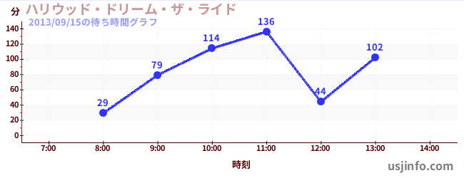 • ハリウッド・ドリーム・ザ・ライド$B$N(B2013年09月15日の待ち時間