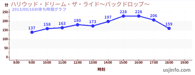 • ハリウッド・ドリーム・ザ・ライド〜バックドロップ〜$B$N(B2013年09月16日の待ち時間