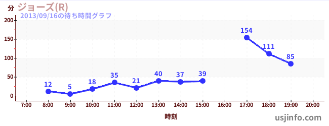 • ジョーズ(R)$B$N(B2013年09月16日の待ち時間