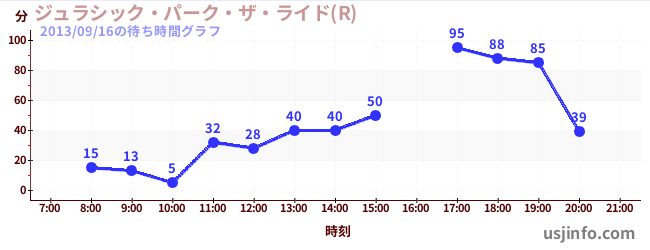 • ジュラシック・パーク・ザ・ライド(R)$B$N(B2013年09月16日の待ち時間