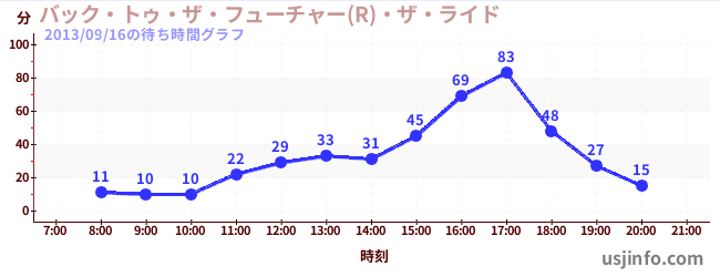 • バック・トゥ・ザ・フューチャー(R)・ザ・ライド$B$N(B2013年09月16日の待ち時間